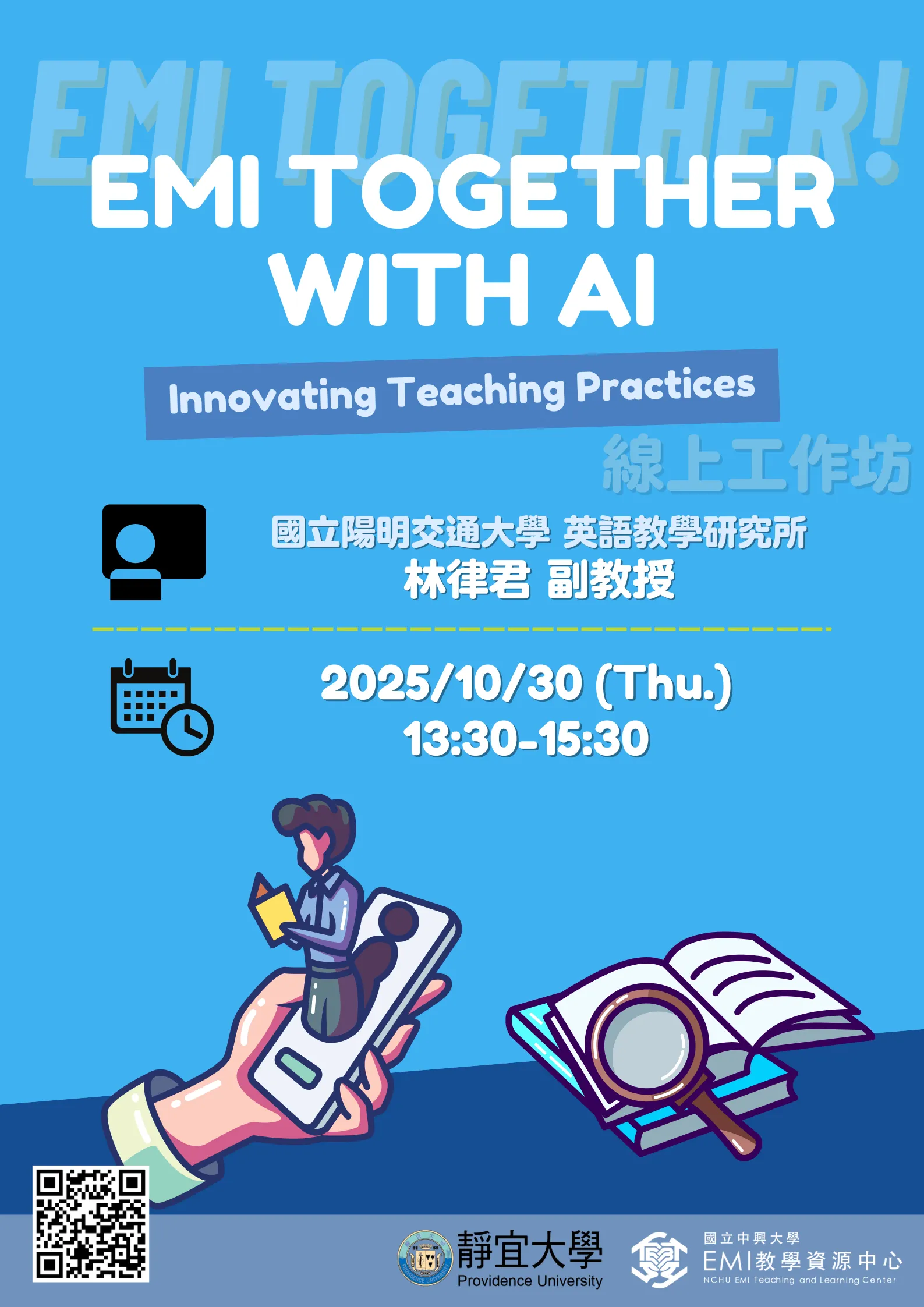 在 AI 時代,大學教師如何善用數位工具提升 EMI 與 ESP 教學?本講座將分享我實際運用 Padlet(含Sandbox、TA)、Napkin.ai、NotebookLM 等工具於課程備課、互動教學與形成性評量的案例。透過多元數位資源,教師不僅能增強學生參與度與自主學習動機,更能設計兼具創新與實用的教學策略,打造更有效能的高教學習環境。