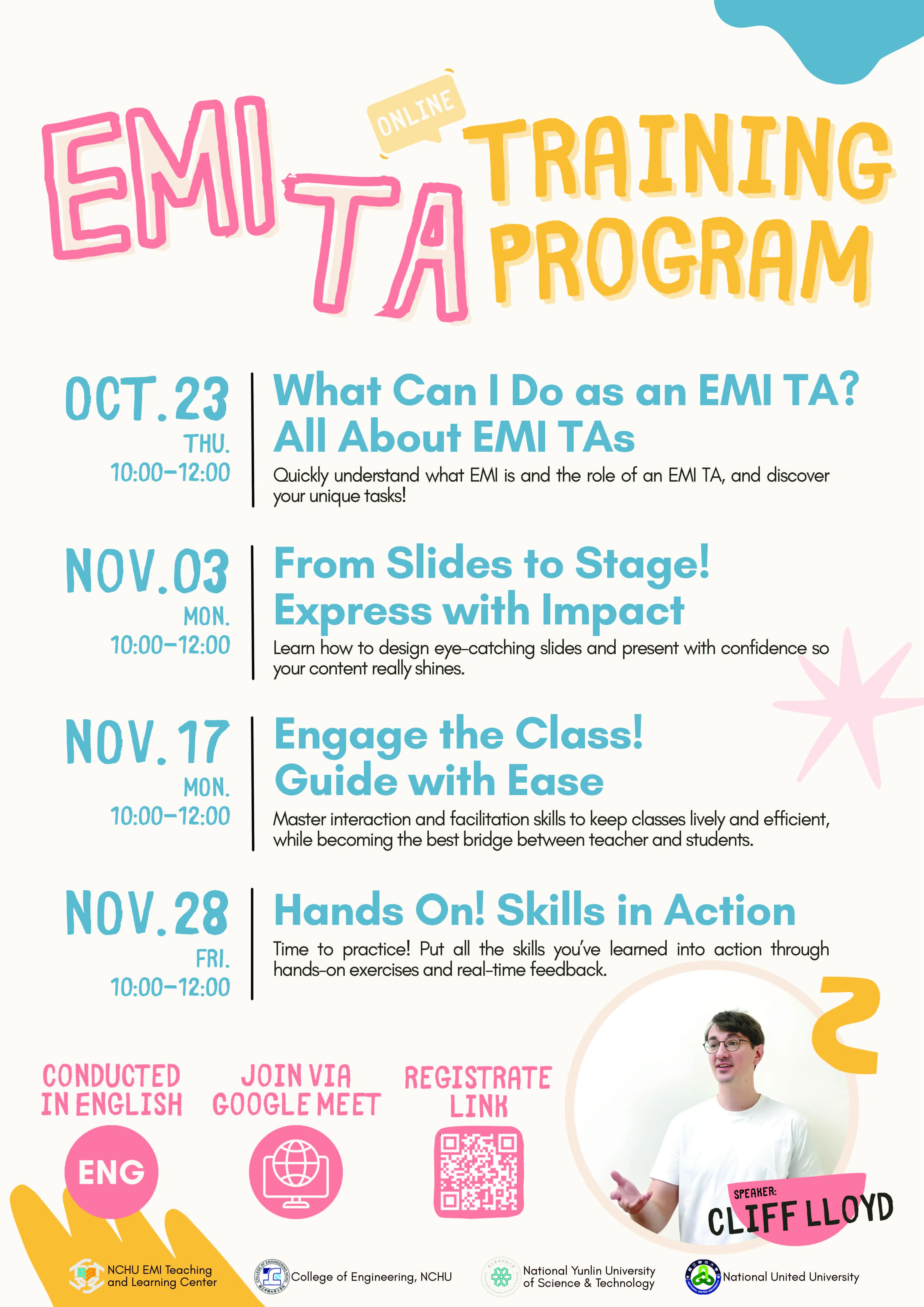 線上:Google Meet 將於活動前一天提供會議連結